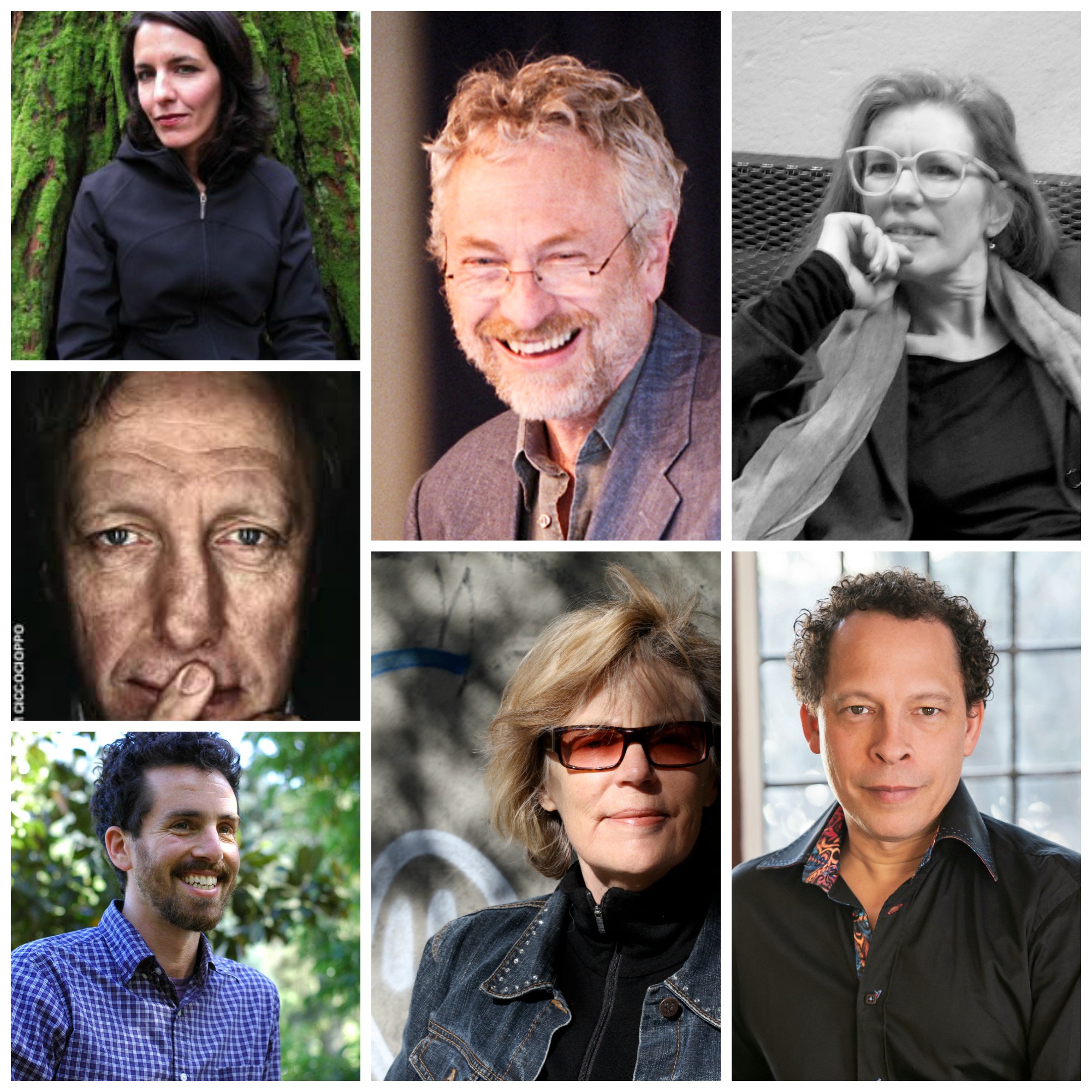 (left to right, top): Charlotte Gill, Literary Journalism (photo credit: Kevin Turpin); Greg Hollingshead, Writing Studio; Lisa Robertson, Writing Studio (Photo credit: Laird Hunt); Ian Brown, Literary Journalism (photo credit: William Ciccocioppo); Eli Horowitz, Digital Narratives (photo credit: Rachel Khong); Marni Jackson, Mountain and Wilderness Writing (photo credit: Brian D. Johnson); Lawrence Hill, Historical Fiction Intensive (photo credit: Lisa Sakulensky / HarperCollins Canada Ltd.)