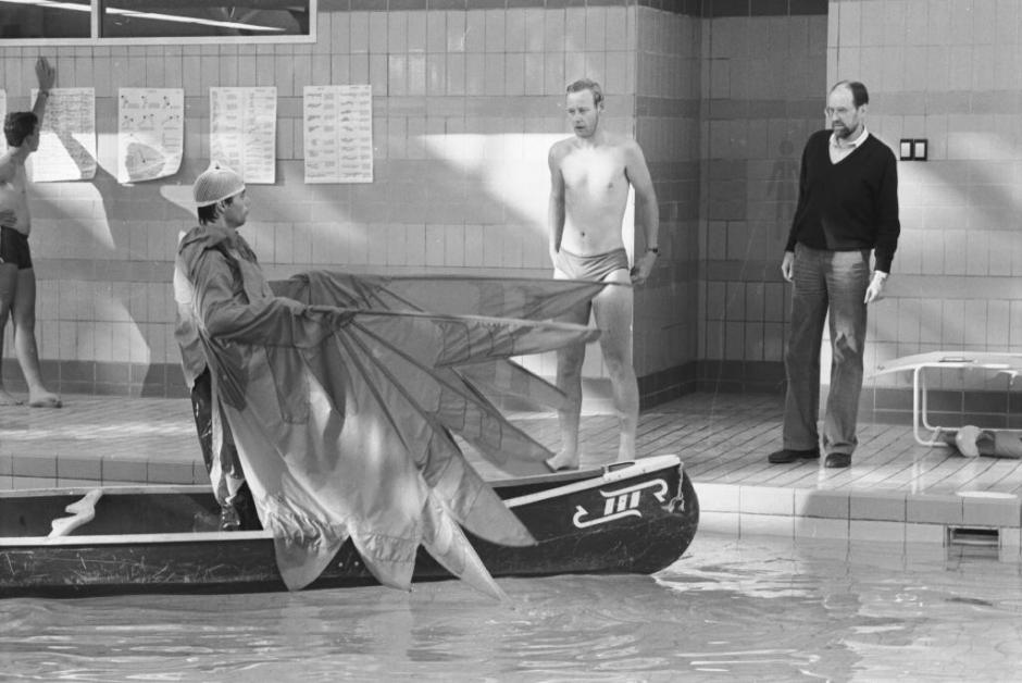 Dancers, who wore bird-like costumes with large wing spans, feared falling into the lake with their heavy attire. So as a precaution, the cast completed trial runs at the Sally Borden recreation facility’s pool to see if the performers could jump back into their canoes if they fell into the water.