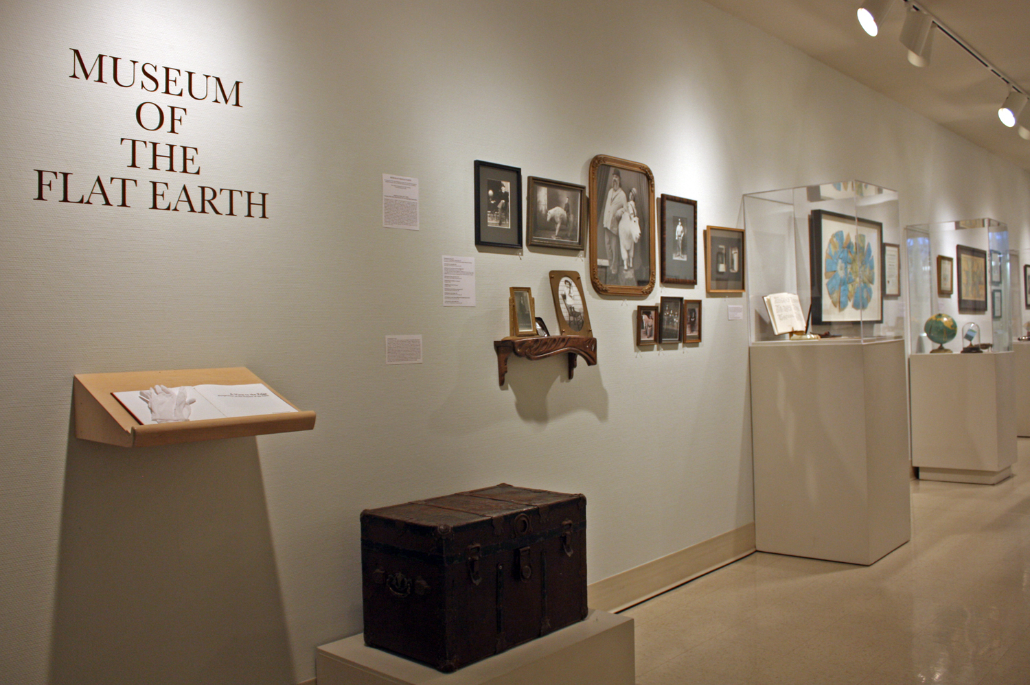 Some of the artifacts that will make up Burns' Flat Earth Museum, on display at the Beaverbrook Art Gallery in Fredericton. (Photo: Kay Burns)