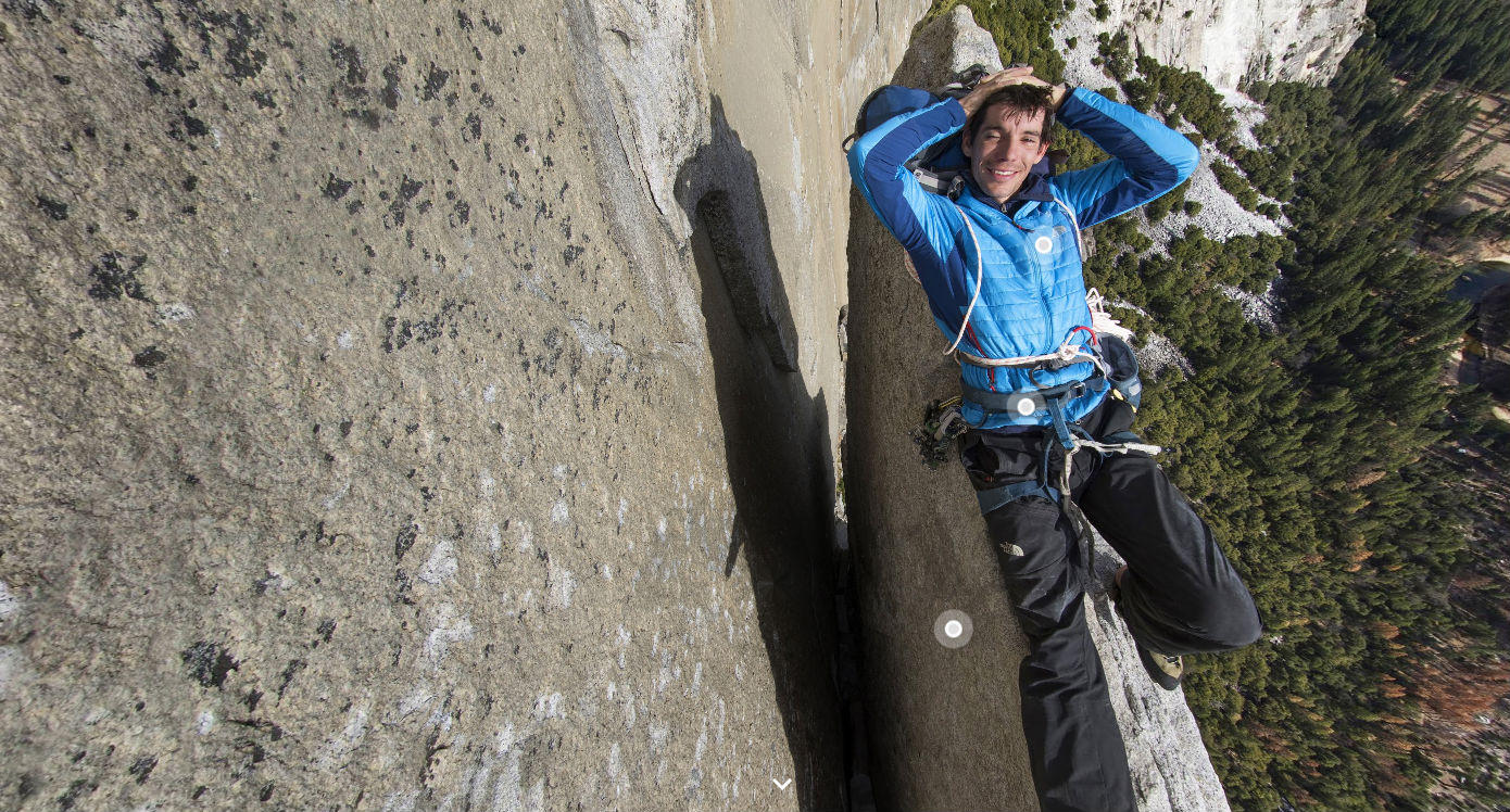 The panoramas capture climbers on some of The Nose's most iconic spots -- like Alex relaxing on the Texas Flake. (Google Street Treks)