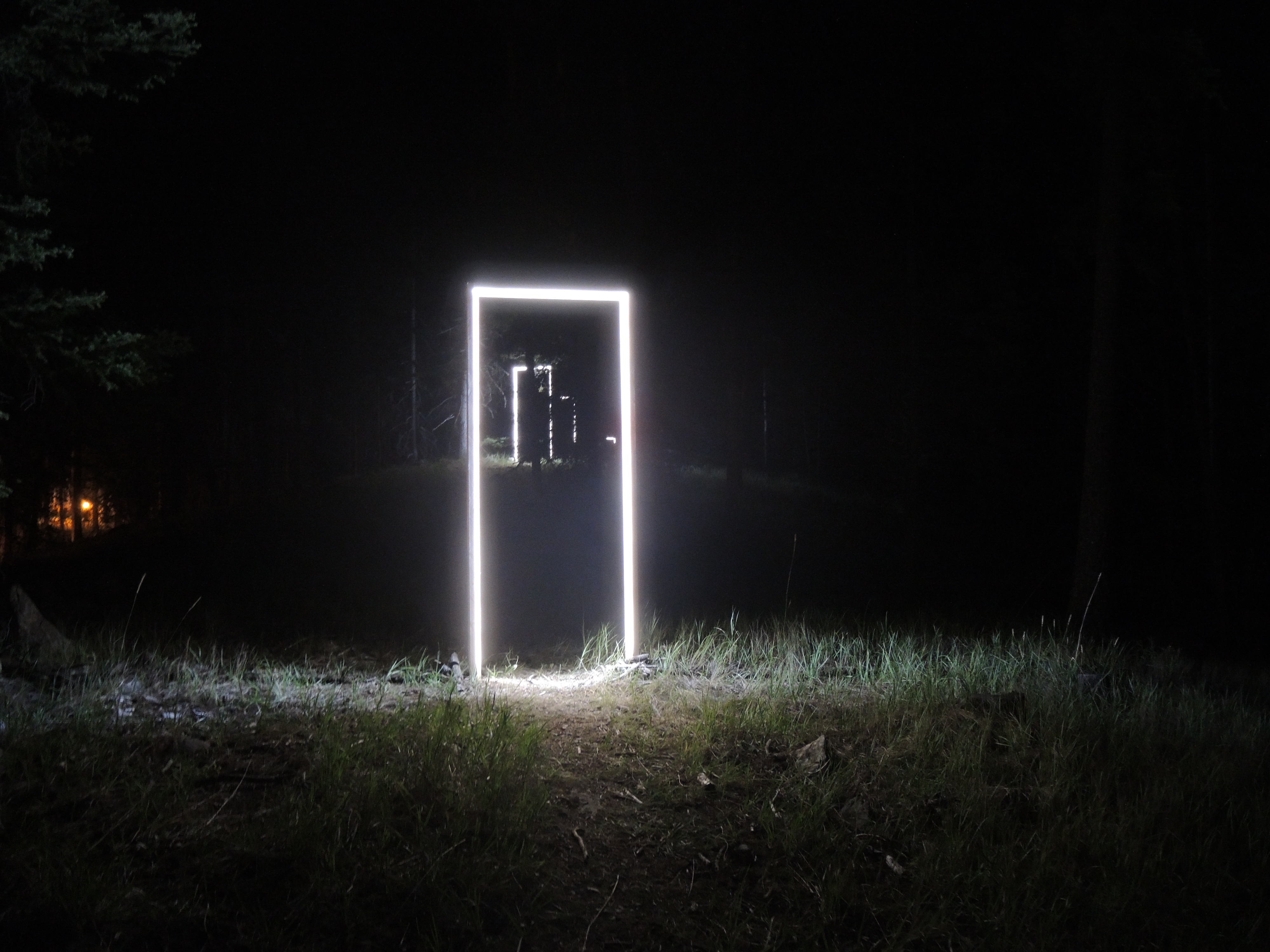 Picture this: you’re walking through a forest in the middle of the night. Your only source of light is a series of fluorescent doorways leading you down a path, deeper and deeper into the inky black. Around you are projected voices explaining the human relationship to darkness — “I actually feel really comfortable in the dark,” says one. It’s a total sensory experience. This is the space that artists Caitlind r.c. Brown and Wayne Garrett created for their participants. Watch: