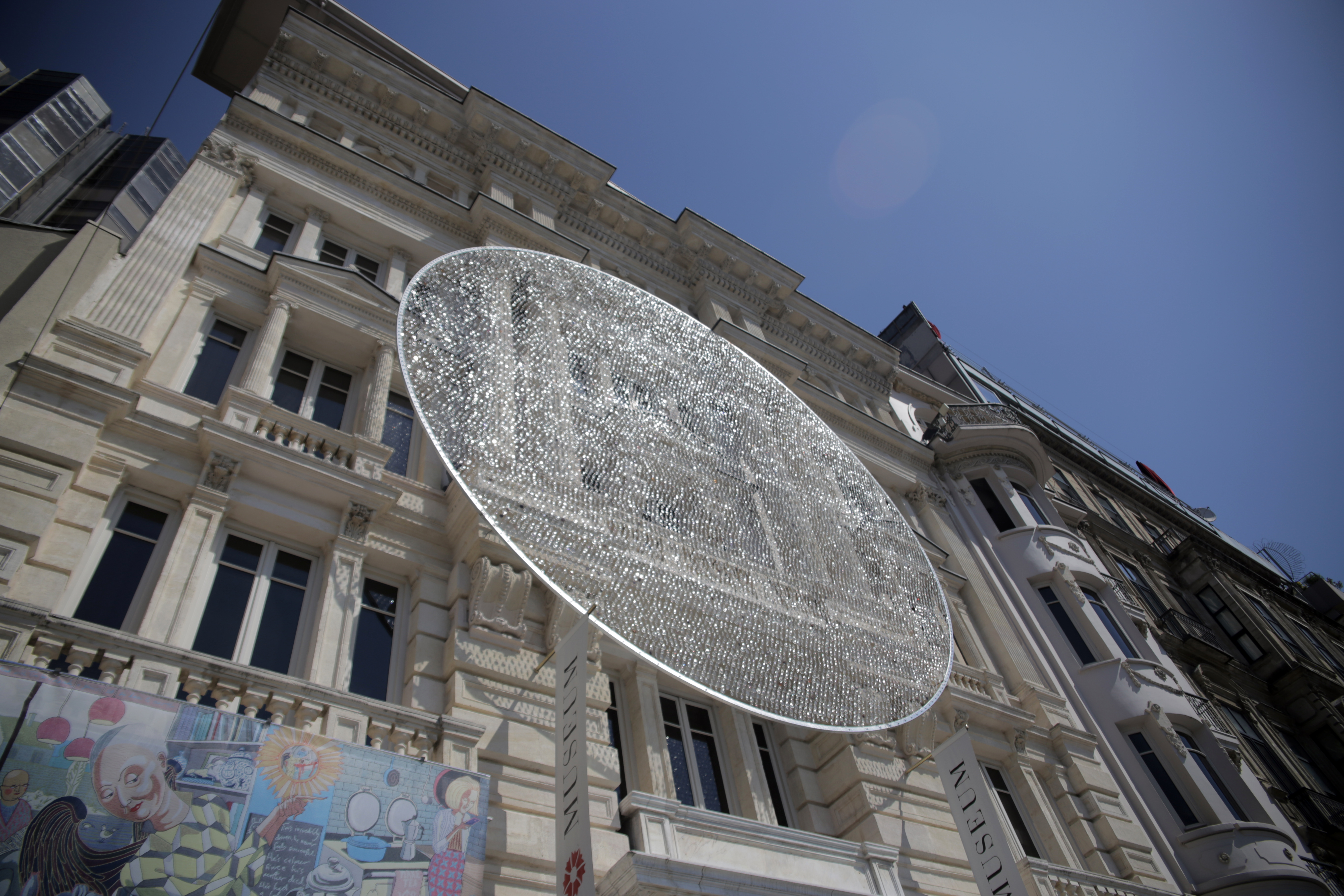 sea/see/saw; a sculpture made out of 14,000 used eyeglass lenses displayed in Istanbul