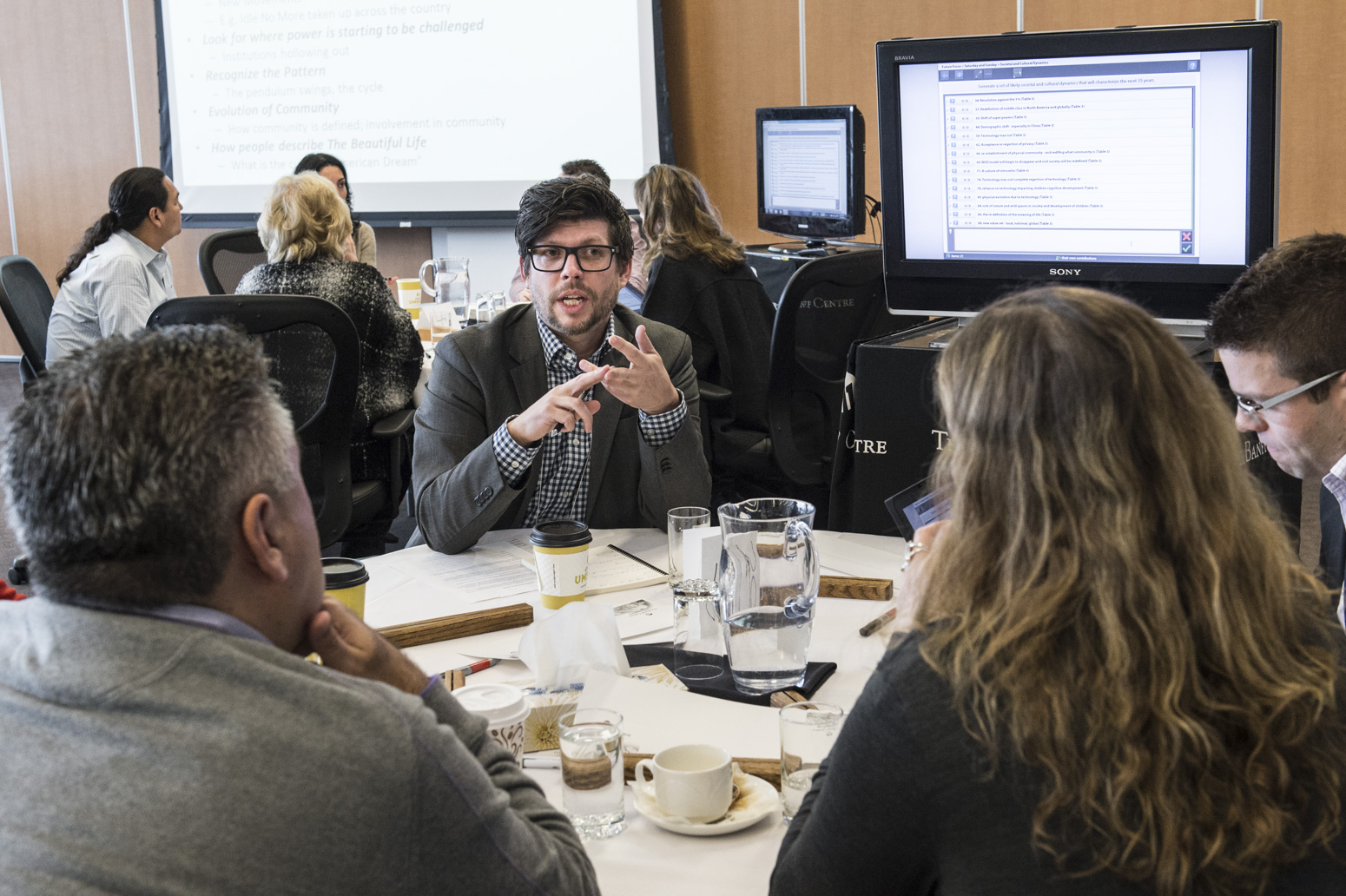 What will it mean to lead, in any capacity, in the next 35 years? Think of someone who is 20-years-old today, educated, setting out on a productive life who may find him or herself in various leadership roles over the next three-and-a-half decades. What conditions will this person face and how might those conditions change over time? How will this leader know they are successful? What qualities or personal capacities will this leader need to develop and how? What will be the single biggest obstacle to this leader’s success? The Peter Lougheed Leadership Institute brought together a group of diverse individuals in a collaborative capacity to explore and identify the challenges, requirements and opportunities to help shape the future of leadership and leadership development. The Lougheed Leadership Network is an ongoing group of passionate change makers who are making a difference through their visionary work with a goal of contributing to the global conversation about leadership in the world today. “We want to identify the elements needed for a style of leadership that will be able to address the challenges identified for the first half of the 21st century. We not only want to know the elements of future leadership practice, but how they can be developed,” said Dan Buchner, vice president, Peter Lougheed Leadership Institute. A list of challenges future leaders might face representative of the types of societal conditions that those taking on the role of leader will face were identified during the Future Focus session conducted at The Banff Centre.