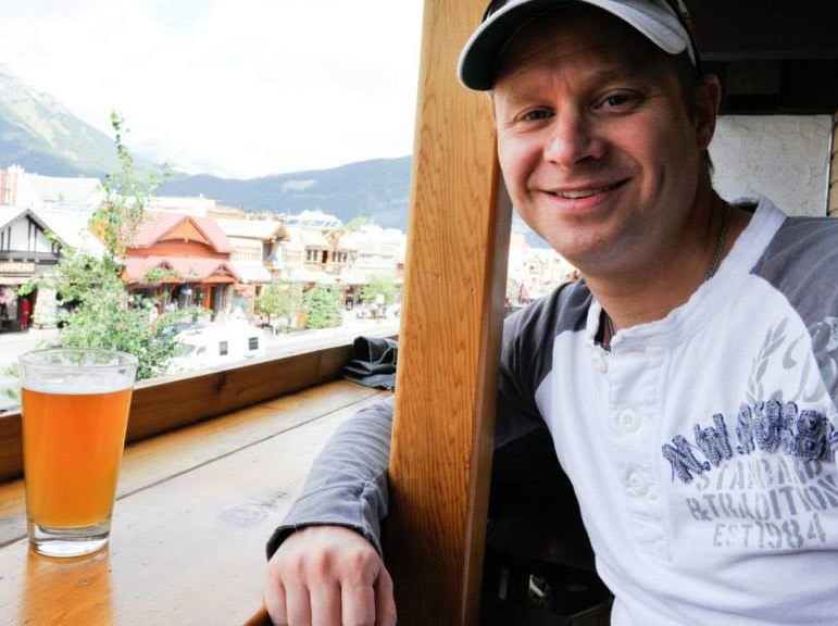 Dan enjoying a beautiful day with great company at the Banff Brew Pub balcony.
