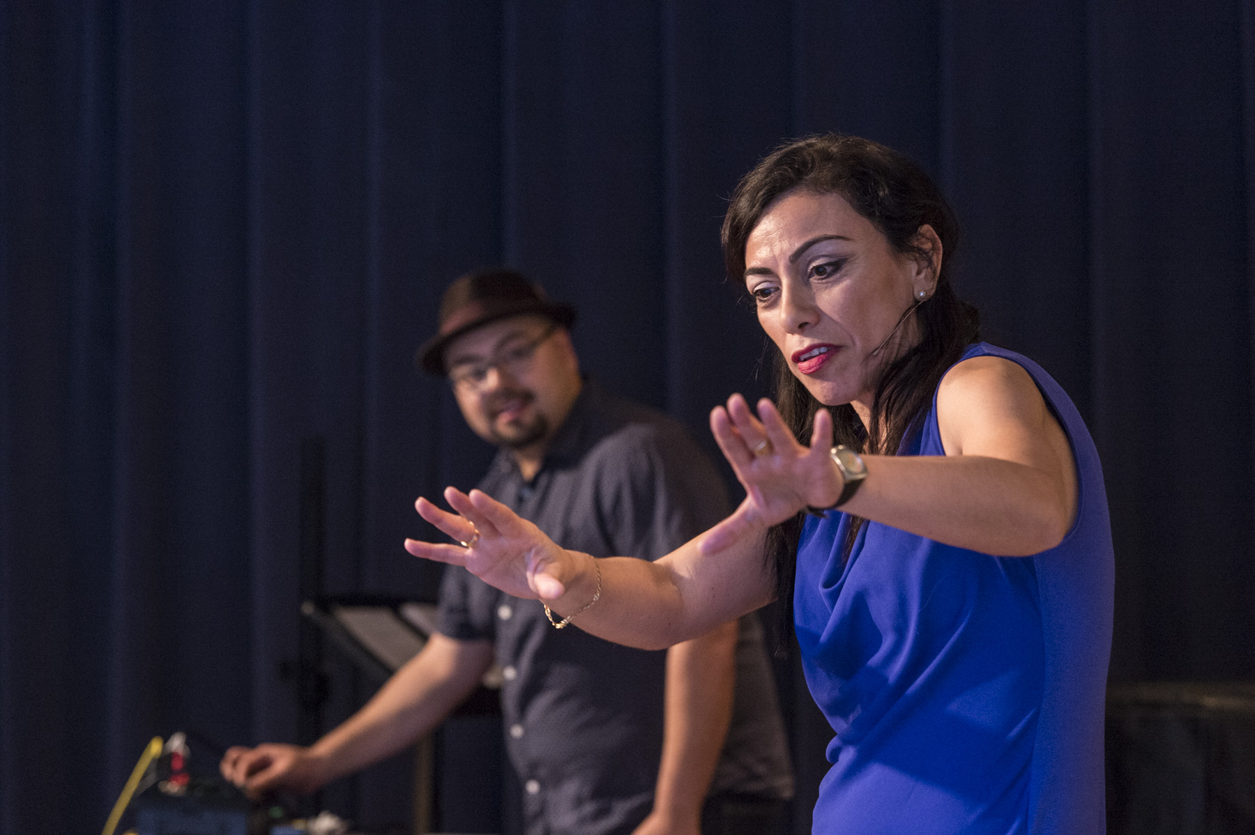 The development process for Broken Tailbone has been about testing the material with an audience. We have done this twice. The first time was in Vancouver in September 2015, organized by the Playwrights' Theatre Centre, and it was a huge success. There was a DJ onstage, and our relationship added another layer to the piece. We tried the material out again in November 2015 in Toronto, as part of Aluna Theatre's Caminos Festival. That, too, was a hit. A week was spent working on the piece, refining, shaping, and structuring, and we filmed the evening.