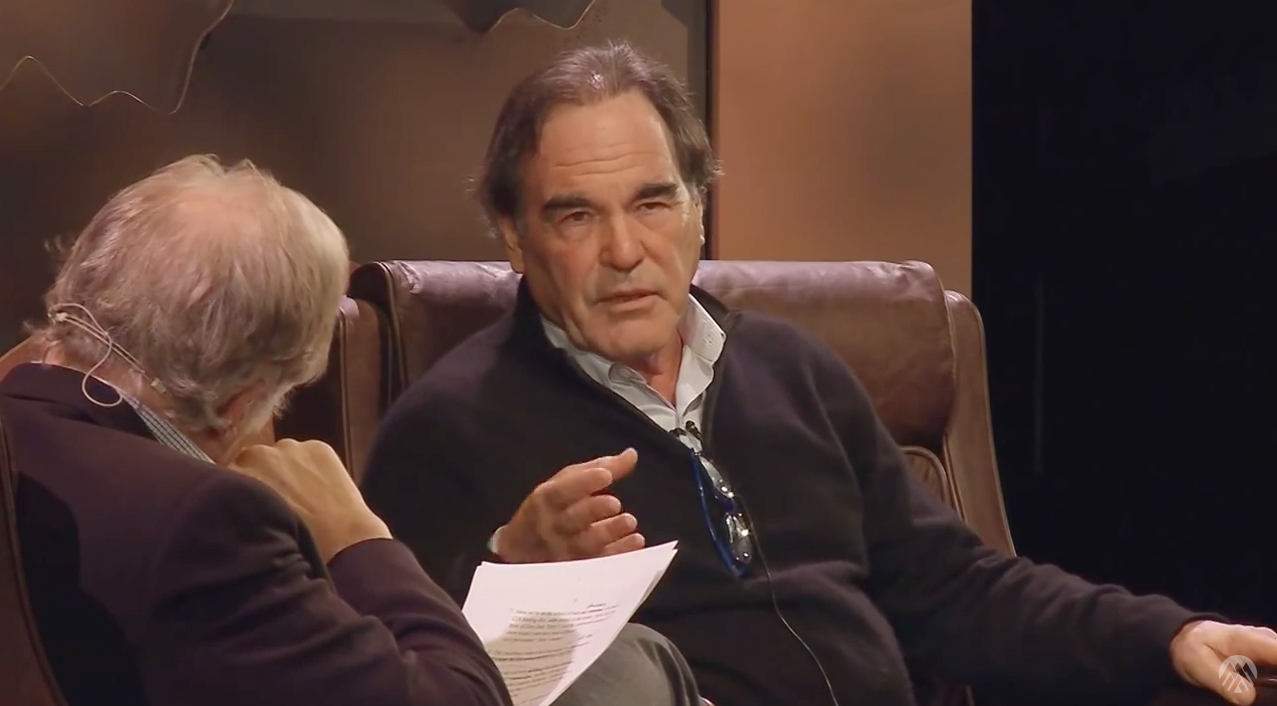 It’s remarkable how quiet 950 people can be. Ian Brown’s introduction of Oliver Stone on Saturday night —“easily the most controversial filmmaker of our time,” “a recklessly outspoken left-wing provocateur” — was greeted with loud applause and wolf-whistles; but once his interview with Stone began, the sold-out Eric Harvie Theatre hushed.