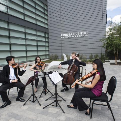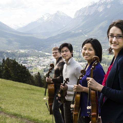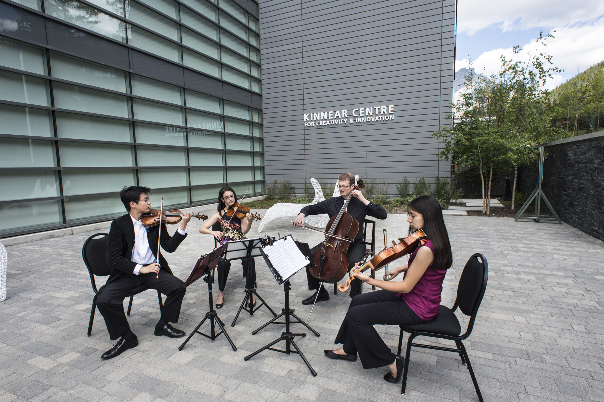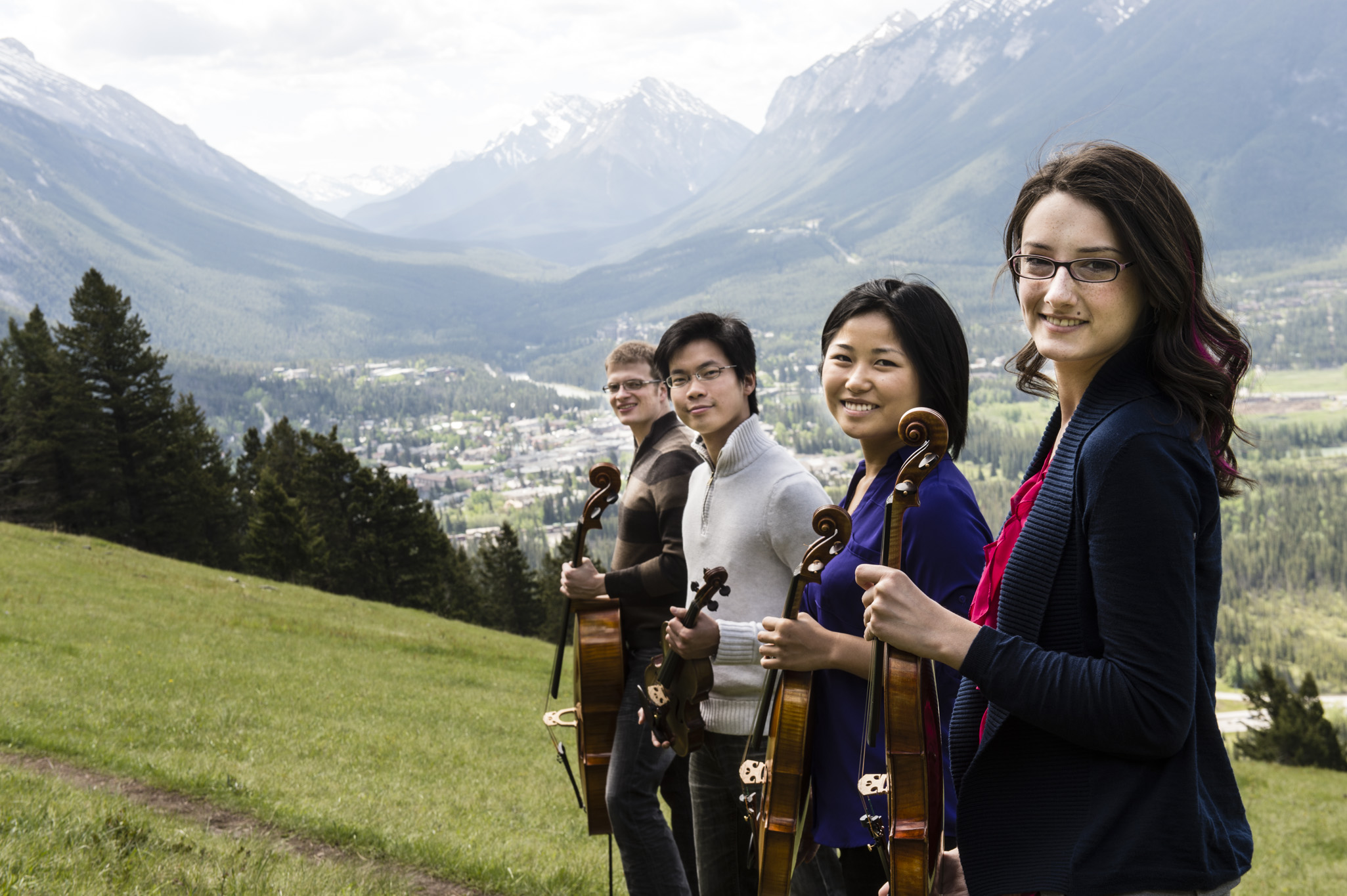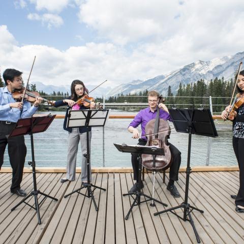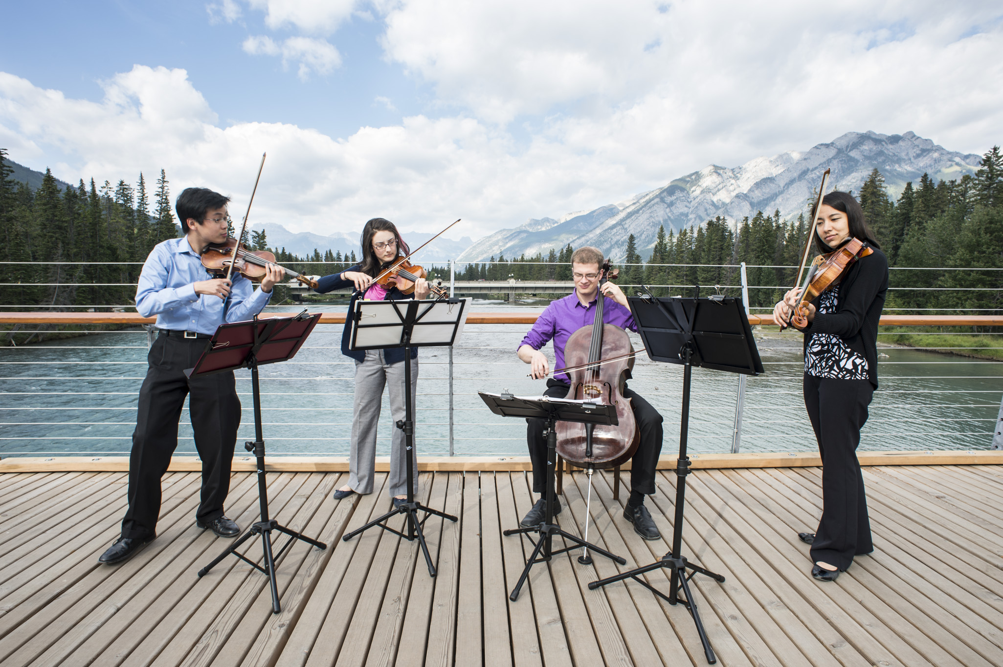 The Quartet in the Community program takes chamber music out of the concert hall and introduces it to new audiences in unexpected locations. Lucky listeners in the Bow Valley will see the 2016 Quartet in the Community, comprised of Banff Centre alumni Christina Choi, Danny Koo, Keith Hamm, and Julie Hereish, performing in fun and bold locations.