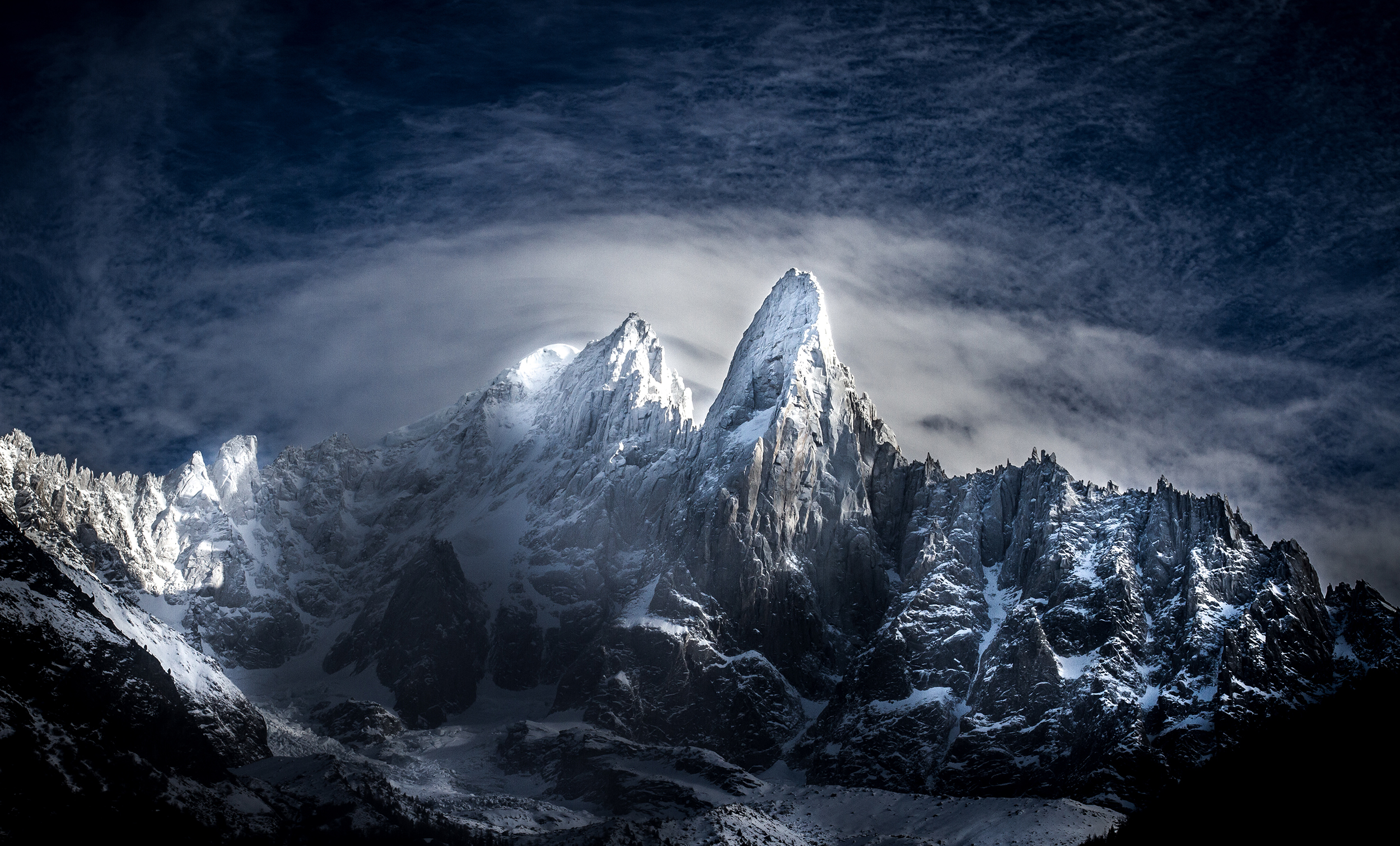 This photo was taken in January 2015, and there was a mysterious atmosphere in the sky as a strong foehn wind picked up just after a big snow storm had cleared. The swirling clouds took a bizarre form in the evening light. I don't think I'll ever take a photo quite like this of Les Drus again!