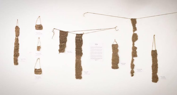 The collection includes three sets of poems: Elizabeth Bishop’s “Sandpiper” (1962) and P.K. Page’s glosa “Poor Bird” (1994); Sylvia Plath’s “Blue Moles” (1960), Anne Sexton’s “Sylvia’s Death” (1963), and Maxine Kumin’s “How It Is” (1974); and several translations by women of Sappho’s “Fragment 113”. Each poet reflects and expands on the lives, deaths, and words of the women who came before her, just as my ‘poems’—the tapestries—contain and reinvent each woman’s language. I wrote the patterns by mapping the stressed and unstressed syllables in the rhythm of each poetic line, and then translating those into knit and purl stitches. Each line of verse is a knitted row and each syllable, a stitch. Quite literally, these knitted poems can be read—if you understand both languages.