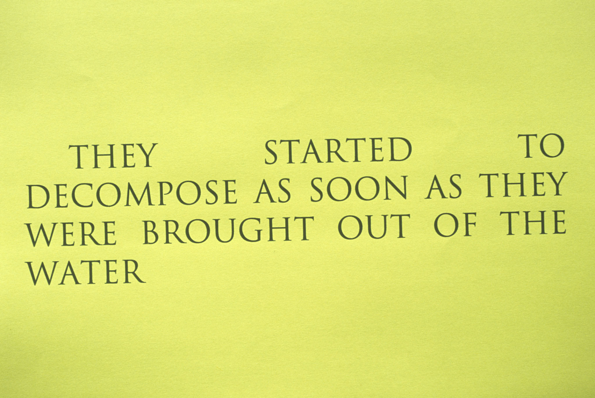 An Ever Changing Meaning included artists who navigate a landscape of language, objects, and ideas which are buried under layers of interpretation. Within this shifting territory, the artists seek ways to negate singular meanings and suggest multiple readings for their audience. Drawing attention to the subjective status of the artworks points to the fact that languages are hybrid and transitory: owned by no one, yet interpreted by all.