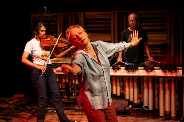 Improvisation. Parmela Attariwala (viola), Anders Åstrand (percussion), Marie-Josée Chartier (dance). Performed at the Evolution: Classical 2023 Faculty Concert, August 2023. Photo by Rita Taylor