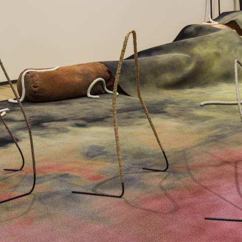 An accompanying anthology includes newly commissioned texts by alumni and is edited by WPG Curator, Peta Rake. The logic of the anthology takes up both the subjective and objective and towards multiple intersecting ‘horizons’, with each individual reconstituting, or dismantling typical renderings of this subject from their own worldview. Of the six invited contributors, three writers—cheyanne turions, Amelia Groom, and Andrew Berardini—have framed their essays through pre-existing texts of other writers and artists. Richard William Hill, Katherine Ylitalo, and Lisa Myers all addressed works from the Walter Phillips Gallery’s Permanent Collection. Richard William Hill writes on Rebecca Belmore’s work, "Ayum ee aawach Oomama mowan: Speaking to Their Mother" (1991); Lisa Myers writes on her own series of works, entitled "Blueprints" (2015/16); and Katherine Ylitalo pens a letter to artist Mike MacDonald about his work, "Butterfly Garden" (1999). These intersecting texts all speak to the concept of horizon in divergent ways, positing these artworks as sites of inquiry, tension, reckoning and reciprocity.