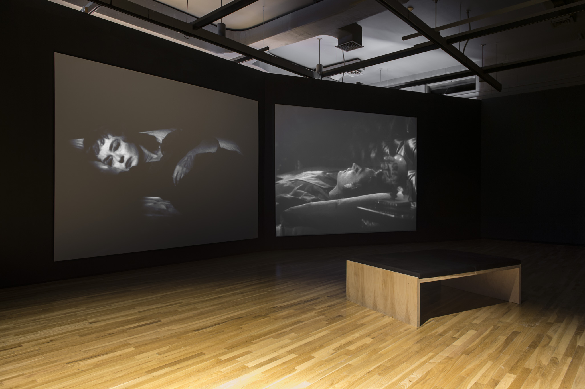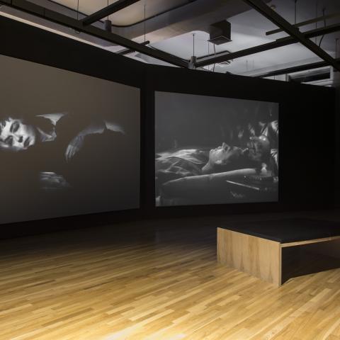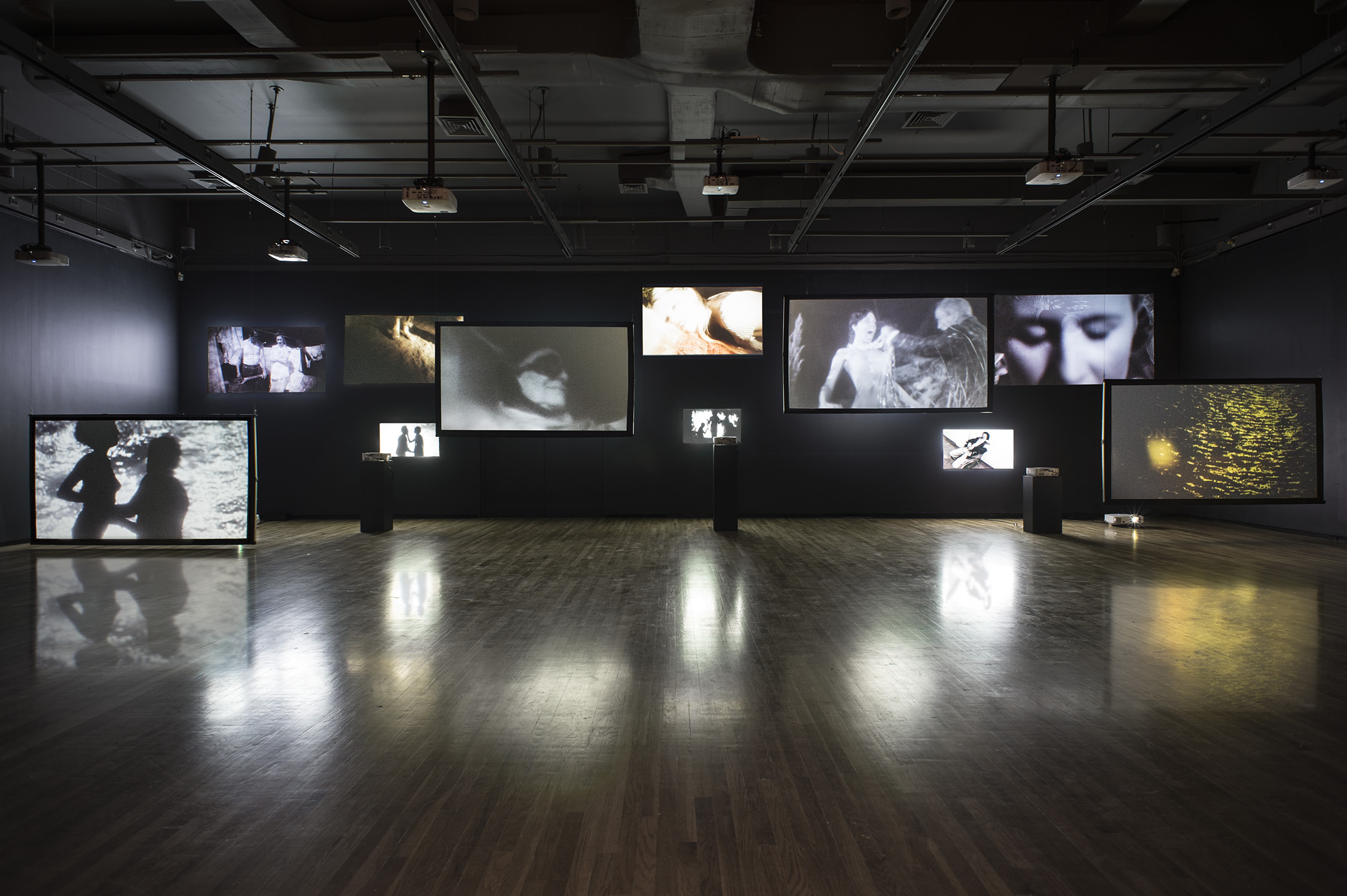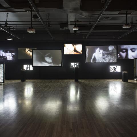 Guy Maddin, installation view of "Hauntings I" (2010). 11-channel, super 8mm and HD video transferred to DVD, black and white, silent. Walter Phillips Gallery, The Banff Centre. Commissioned by TIFF. Photo Rita Taylor