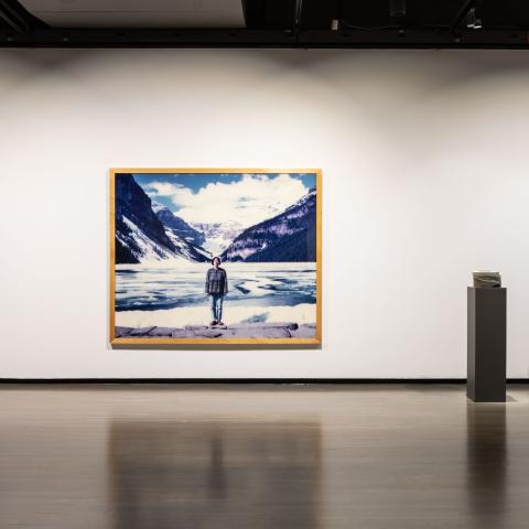 The selection of works also reflects a number of curatorial echoes that recall past exhibitions at Walter Phillips Gallery and at other institutions in Canada. Jin-me Yoon's iconic Souvenirs of the Self (Lake Louise) (1996), which originally took the form of a postcard when commissioned for the exhibition, Between Views and Points of View (1991), is here shown alongside Ayum-ee-aawach Oomama-mowan: Speaking to Their Mother (1991) that too was commissioned for the exhibition. The Shape of an Echo is also indebted to the exhibition, Speaking about Landscape, Speaking to the Land (2003-2005) curated by Richard Hill at the Art Gallery of Ontario, which brought Belmore's work in conversation with historical Canadian landscape paintings. These varied artistic and curatorial histories highlight Banff Centre as an influential site for artists across generations whose works negotiate meanings of the region's iconic landscapes and their relationship to questions of Indigenous sovereignty, national identity and belonging, human consumption and shifting discourses on art and ecologies.