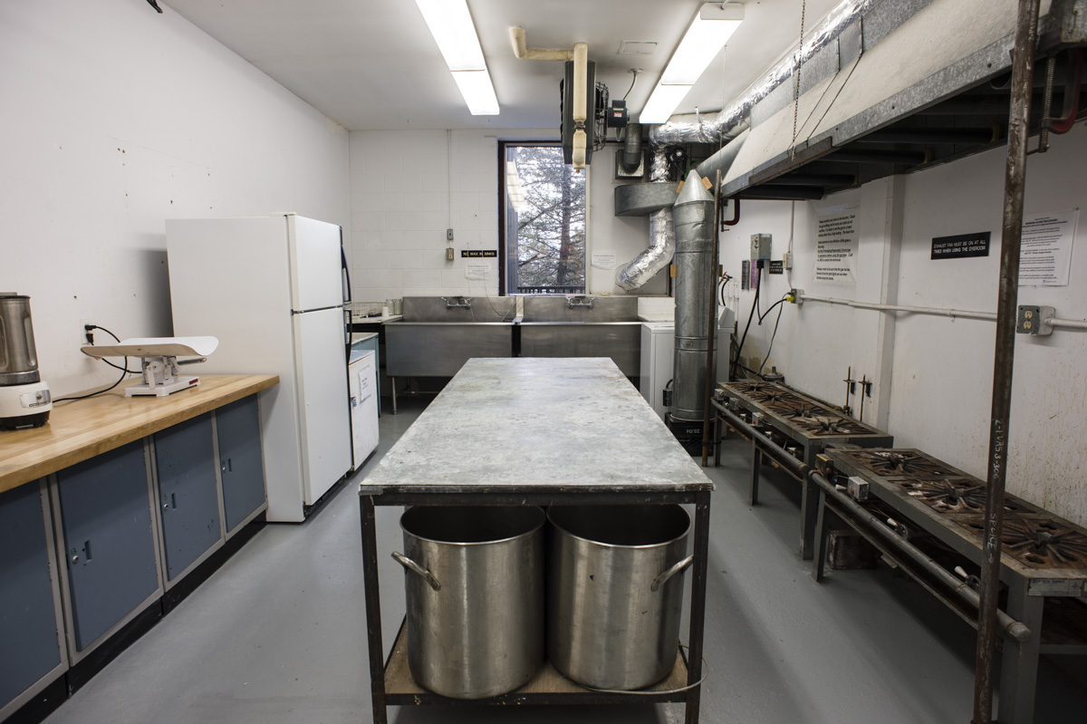 The adjoining dye facility contains gas burners and ventilation for textile dyeing and fibre processing. A 4x8' padded textile table is used for printing and hand dying fabric. 24-hour studio access is provided to artists-in-residence.