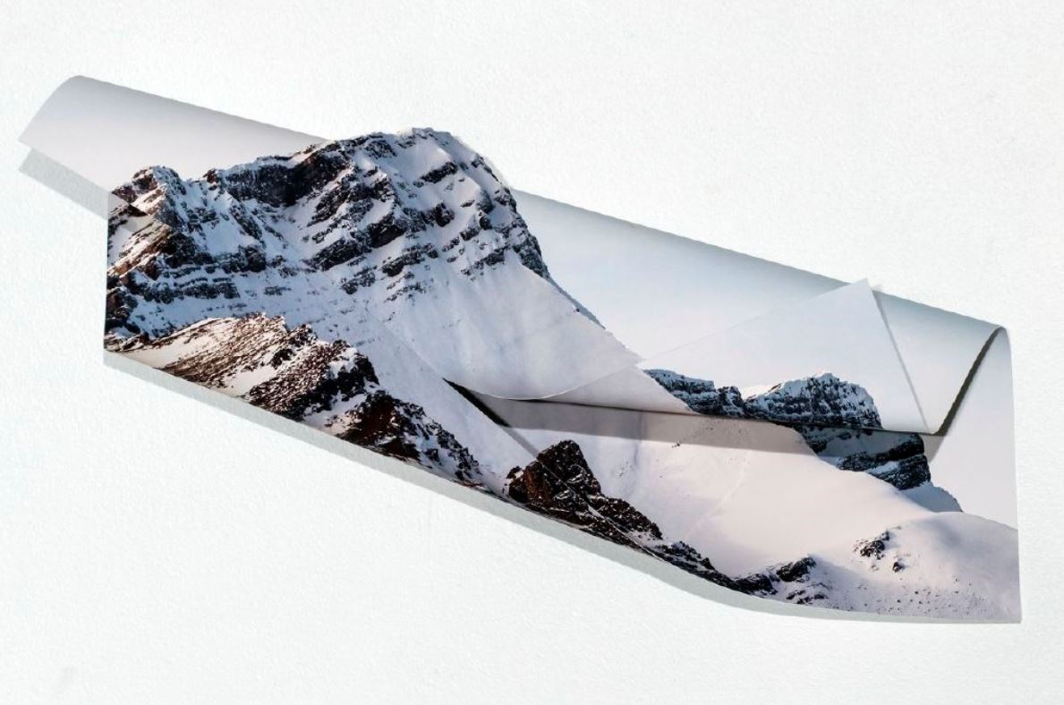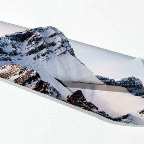 Photographed from various sites throughout The Banff Centre campus, Los‐Jones' images distort the usual view of our surroundings and destabilize a natural sense of order. The lives of these images have seen multiple stages of transition; flat‐image planes, to image surfaces manipulated by the artist's hand in the space of the studio, and are finally re‐photographed as objects. These are objects in a constant state of re‐imaging and negotiation. Existing somewhere between the studio and the digital, the physicality of the work is disrupted, which begs the question: where do these images exist in the world?