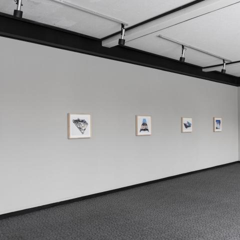 Mountain views become commonplace when thinking about our socio‐locality in Banff, an environment augmented by heightened seasonal tourism and the postcard aesthetic so often used to construct its promotional imagery. Inspired by the northwesterly vista of Cascade Mountain, through the windows that bank the exhibition space, Calgary‐based artist Tyler Los‐Jones' ongoing body of work uncannily reflects the mountains onto themselves.